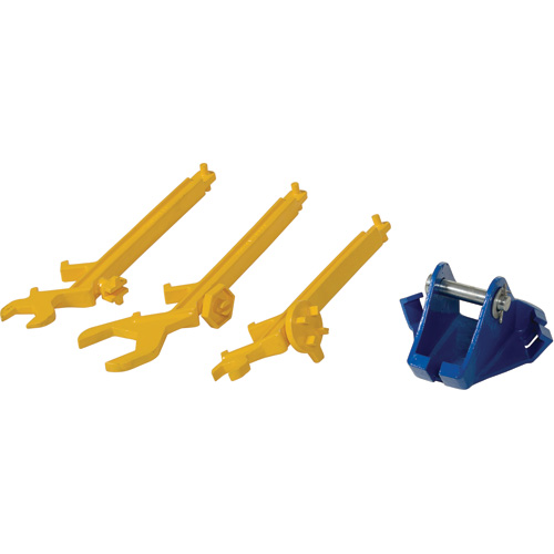 Chaque bras amovible sert également de clé pour différents bouchons, robinets et anneaux à boulon de barils
