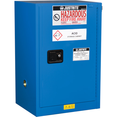 Comprend: étiquette « Hazardous – Keep Fire Away », un paquet de 10 étiquettes spécifiques qui identifie le contenu, à appliquer sur l’armoire selon l’utilisation de celle-ci