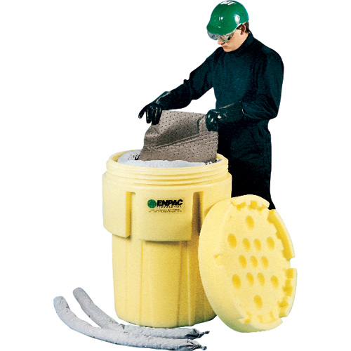 Assez léger pour être manipuler par une seule personne et assez grand pour y placer les absorbants nécessaires aux déversements accidentels