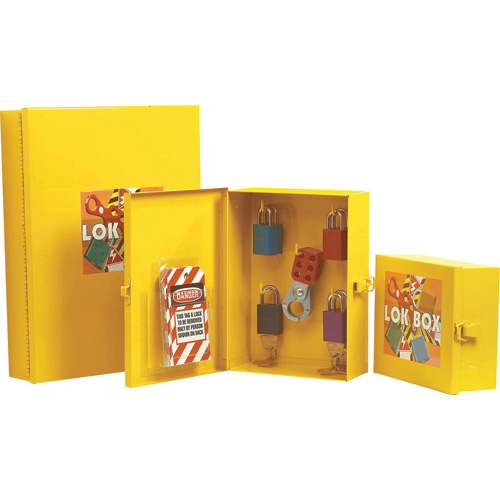 Ce modèle Lok Box résiste aux milieux de travail industriels les plus rudes. Prête à utiliser, elle fournit à vos employés un centre de produits de cadenassage dont ils ont besoin. Elle est peinte d’acrylique polyester industriel cuit de couleur jaune vif. Offerte en trois grandeurs – choisissez celle qui vous convient le mieux. Boîte complète avec cadenas, moraillons et étiquettes (anglais seulement) ou si vous préférez la boîte sans composantes que vous pourrez remplir avec l’ensemble de votre choix.