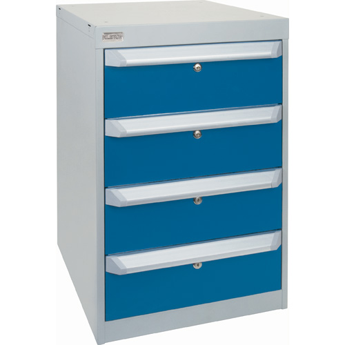 Bâti à revêtement en poudre, tablette grise, tiroirs et portes bleues Kleton