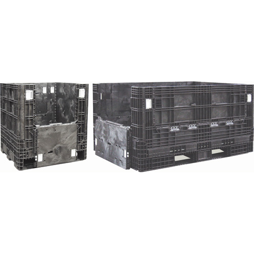 Solides et de longue durée, faciles à monter et à démonter, entièrement recyclables, les conteneurs Orbis remplacent les tonnes de papier gaufré et de déchets de bois. Avec quatre différentes hauteurs de parois, ces conteneurs peuvent cuber des remorques et des conteneurs ISO. Ils se replient à un tiers de leur hauteur, ce qui permet une économie d’espace à leur retour. Ils s’empilent facilement, montés ou démontés, pour créer de l’espace d’entreposage sans étagères. Les modèles décrits ci-dessous sont vendus avec 2 portes (modèles à 1 porte et sans portes sont aussi offerts), une capacité de 2000 lb et des entrées sur quatre cotés. Peuvent être utilisés avec transpalettes et des chariots élévateurs.
