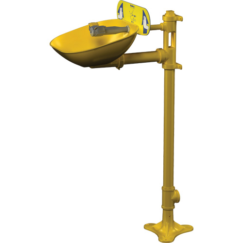 Douches oculaires sur pied idéales pour les endroits où un support mural est impossible, ce qui permet l’installation près des endroits requis