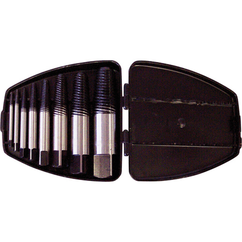 Goujure de forme hélicoïdale en spirale Utilisations: Soutirer les vis, boulons, goujons, et les raccords de tuyauterie et de graissage brisés sans endommager les trous taraudés. Conçus avec goujure hélicoïdale à gauche afin d’agripper et soutirer fermement toute vis ou boulon avec filetage à droite des trous de 3/16″ à 1 3/4″.