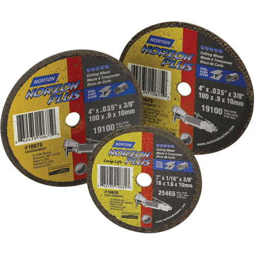 NorZon Plus: jusqu’à 3 fois la durée de vie des disques en oxyde d’aluminium pour l’acier au carbone, l’acier inoxydable et la fonte, débit de coupe 40% plus rapide que les disques à l’oxyde d’aluminium standards