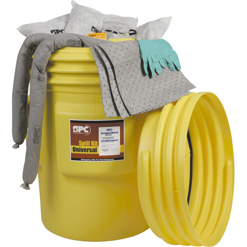 Rencontre les spécifications UN et DOT Comprend: 110 feuilles absorbantes (15″ x 19″) 12 remblais SOC (3″ x 4′) 8 remblais SOC (3″ x 12′) 8 tampons (17″ x 19″) 1 paire de lunettes protectrices 1 paire de gants en nitrile 10 sacs jetables 1 manuel en cas d’urgence