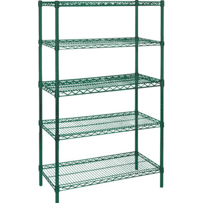 Étagères en treillis métallique au fini époxy vert – Montants